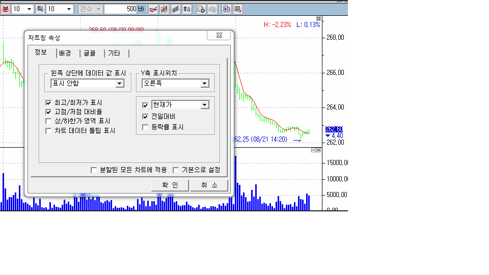 첨부한그림처럼 챠트에 표시안함으로 하면