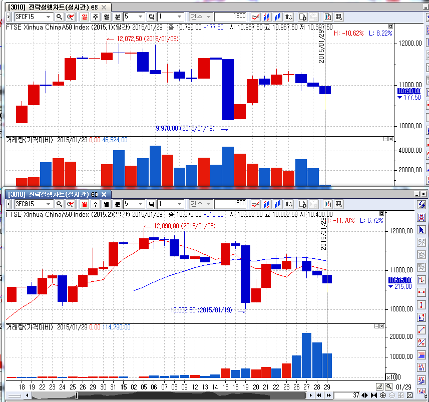 전일까지 1월물이 2월물보다 거래량이 많아서 오늘도 1월물을 기본월물로 설정해서
