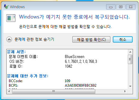 > 제목 : Re : 윈도우7 (64) 블루스크린이 뜨는데요