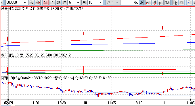 일봉에서 5분봉 주기를 참조하면 일봉 컌들 간격이 너무 떨어져서 표시됩니다.