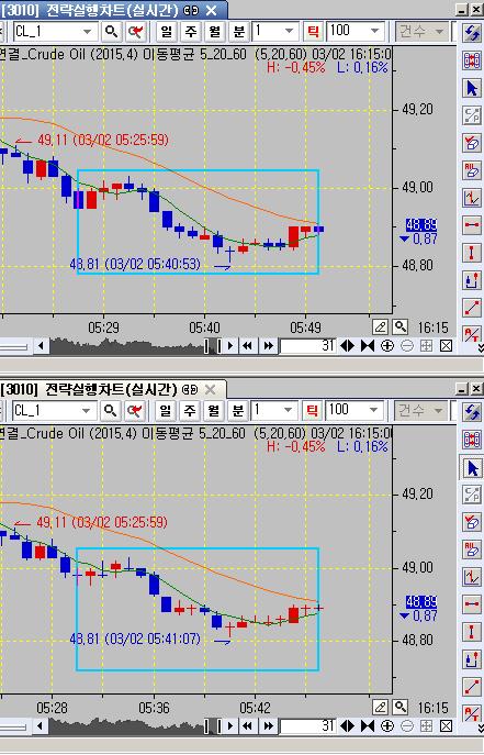 틱챠트를 보고 있다가 일정 시간(5분~10분정도)이 지나서 틱봉이 몇개 더 그려지는 것이 진행되고 나서 다시 같은 틱챠트를 조회하면 기존에 실시간으로 그려졌던 틱봉과 조회해서 나오는 틱봉의 모습이 서로 다르게 표시되고 있습니다. 확인후 조치 좀 부탁드립니다.
