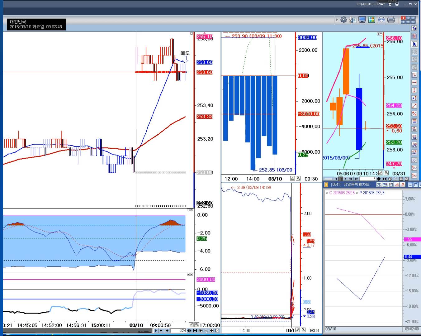 아침 장시작때 봤을 때는 파란색음영이었는데, 오후에 PC를 껐다가 켜니까 핑크빛 음영으로 바뀌어 있네요. 왜 그런지 알고 싶습니다. 원래 이렇게 볼때마다 바뀌는 것인지 아니면 틱챠트를 써서 그런건지 아니면 또 다른 이유가 있는건지요?
