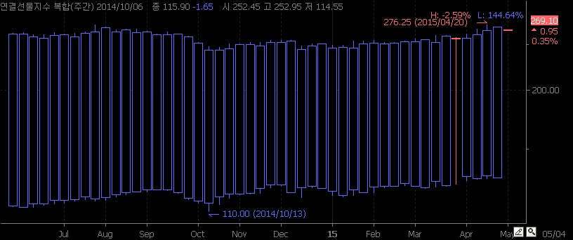 첨부한 이미지 참고하시고, NH트레이더에서 정규장+CME 복합 주봉챠트 입니다.