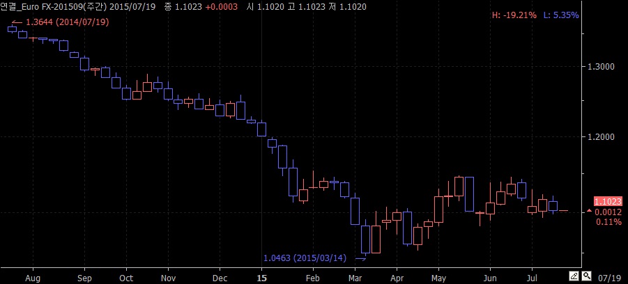 유로선물 주봉에서 캔들표시에 오류가 있습니다.