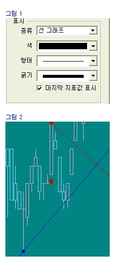 (자동추세선을 더블클릭해서 나오는 속성창에서 '매도/매도표시'에 체크를 하시면 됩니다.