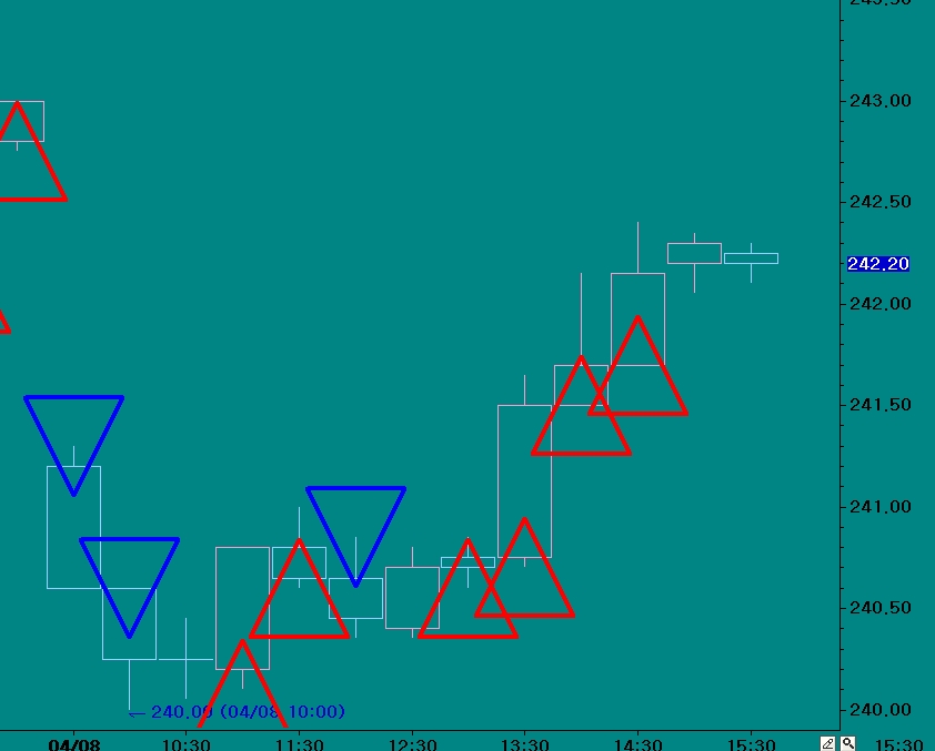 첨부이미지를 보시면 자동추세선에 화살표가 그려진 것이 나옵니다.