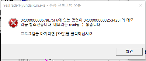 32비트 환경에서는 프로그램당 약 1.2G 정도의 메모리를 사용할 수 있는데 예스트레이더의 경우 차트갯수나 지표식, 시스템식 등의 제한이 별도로 없어서 차트를 많이 띄워서 사용하시거나 복잡한 지표식이나 시스템식이 적용되어 있으면 메모리 초과 현상으로 프로그램 종료현상이 나타날 수 있습니다.