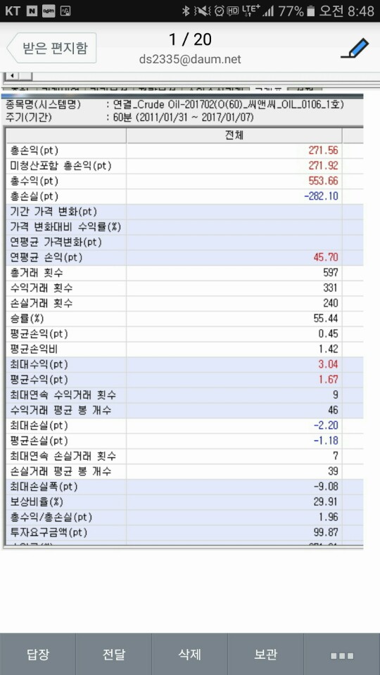 => 성능보고서에서 핵심적으로 보아야 할 항목은, 연평균손익, 최대손실폭, 승률, 평균손익비, 거래횟수 등이며 이것들을 같이 복합적으로 살펴보셔야 됩니다. 이중 두 개를 본다면 연평균손익과 최대손실폭을 보시면 될것 같습니다.
