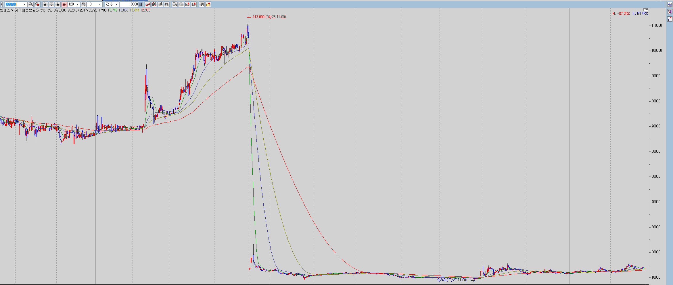 분차트에서 수정주가로 표현이 안돼 왜곡되어 보이는데 이거 어떻게 수정하나요??