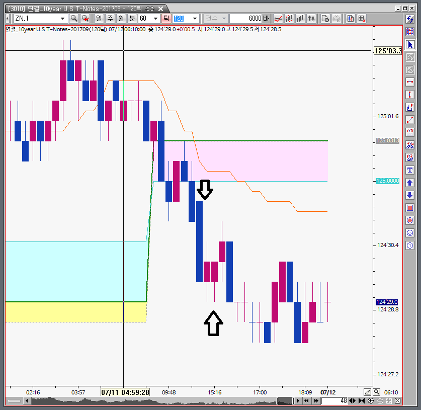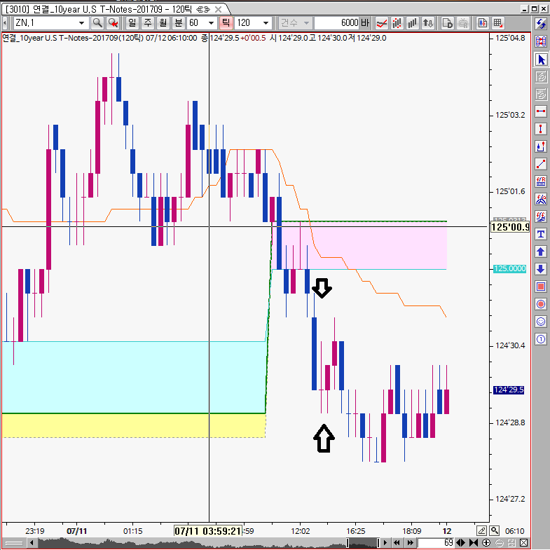 > 이미지 보시면 미국채10년물 9월(연결) 120틱차트입니다.