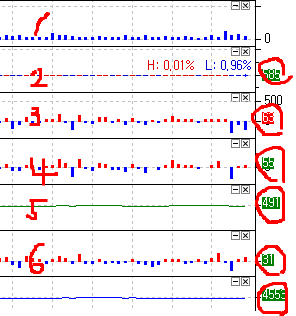 질문2) 그림의 오른쪽에 동그라치 친 수치(마지막 지표값)들의 배경색이 막대그래프의 색깔과 동일하게 나오는데 막대그래프의 색깔과는 관계없이 +일 때는 빨간색으로 -일 때는 파란색으로 나타나게 하는 방법도 좀 부탁드립니다. 차트창 속성-배경 탭에서 조정하니까 기본제공되는 보조데이터는 색깔이 적용되는데 제가 만든 지표에는 적용이 안되네요. 그냥 막대그래프색깔과 동일하게 나와 버립니다.