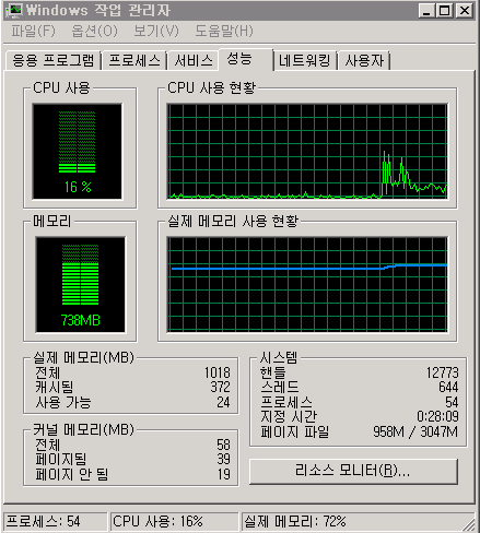 지수선물창을 9개를 띄워두고 선물신호를 받아 스팟 9개를 연동해서 선물신호로 주문을 내려고 하는데 , 프로그램을 모두 띄우니 메모리 사용량이 70% 정도로 유지됩니다. 사양을 업그레이드 해야 하는지 고견 부탁드립니다.