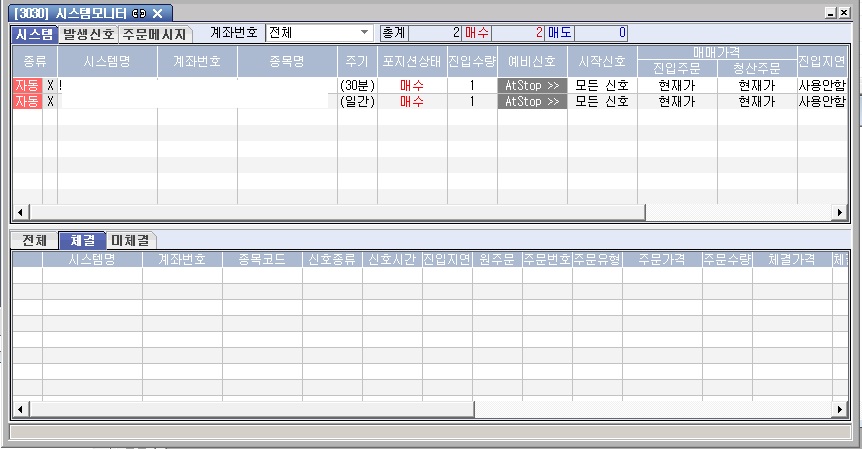 시스템모니터창에선 매수포지션을 보유한걸로 나옵니다.