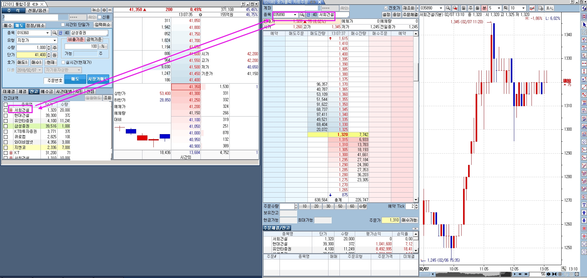 > 1.2101화면의 종목 클릭하면 2018화면에서 연동하는 방법은?