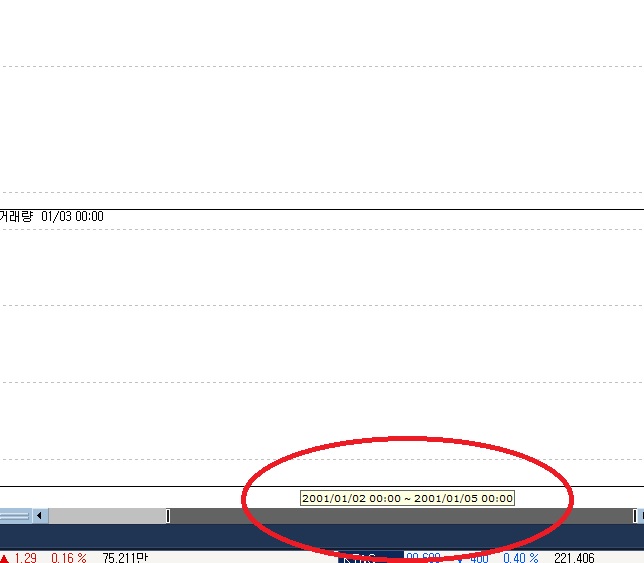 참고로 차트아래에서 기간설정하는 바는 이리저리 움직여 봤는데 분봉은 나오지 않습니다.