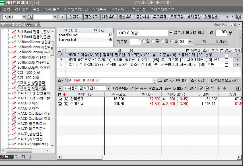 NH Trader에는 조건식을 부여하고 종목을 검색하는 기능이 있습니다.
