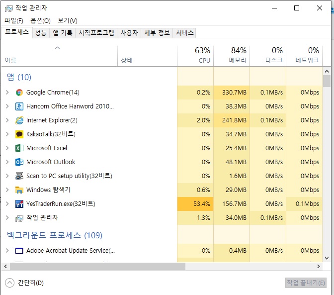 바이러스 체크와 재부팅을 해도 동일하고요.