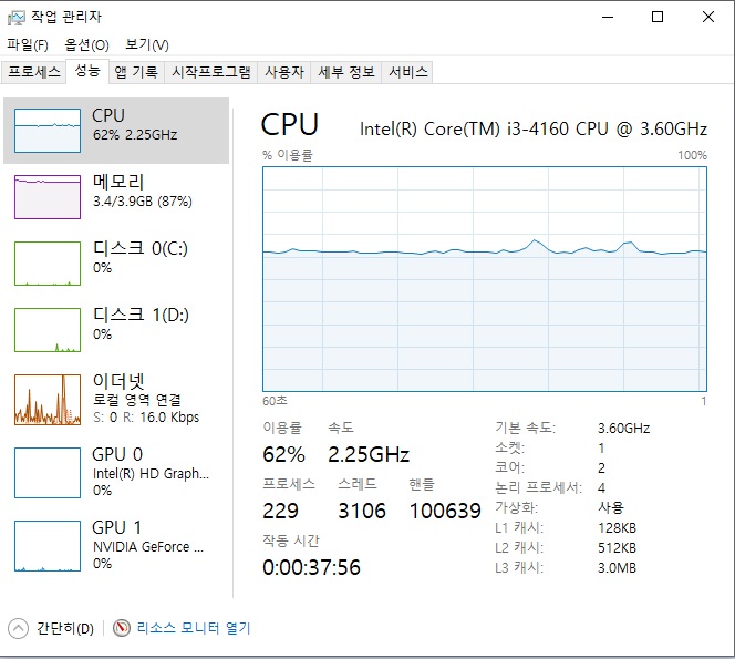 3~5분이면 시뮬레이션 완료가 되는데 지금은 약 1시간 걸리고 있습니다.