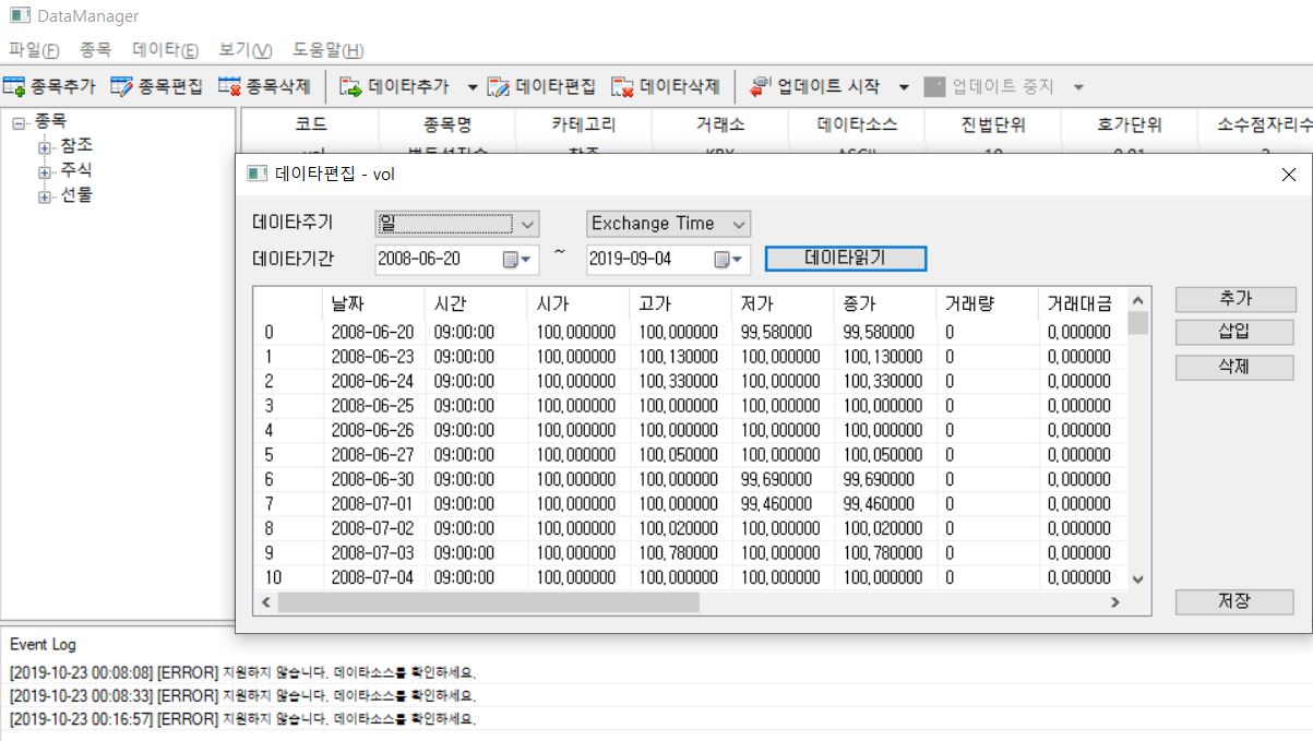 그리고 추가로 문의드리고자 하는 것은 데이터매니저에 추가한 데이터를