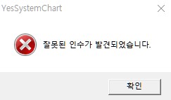 첨부파일과 같은 에러 메시지로 "잘못된 인수가 발견되었습니다."