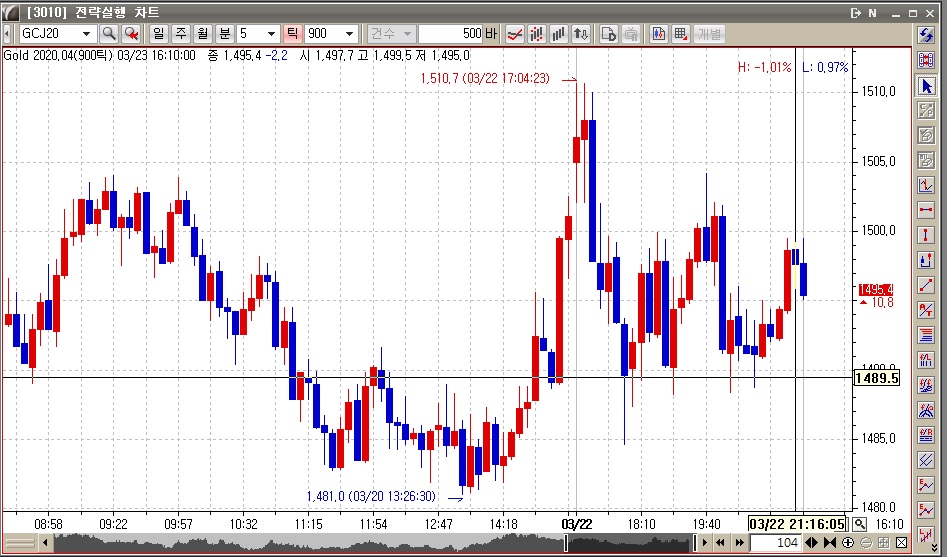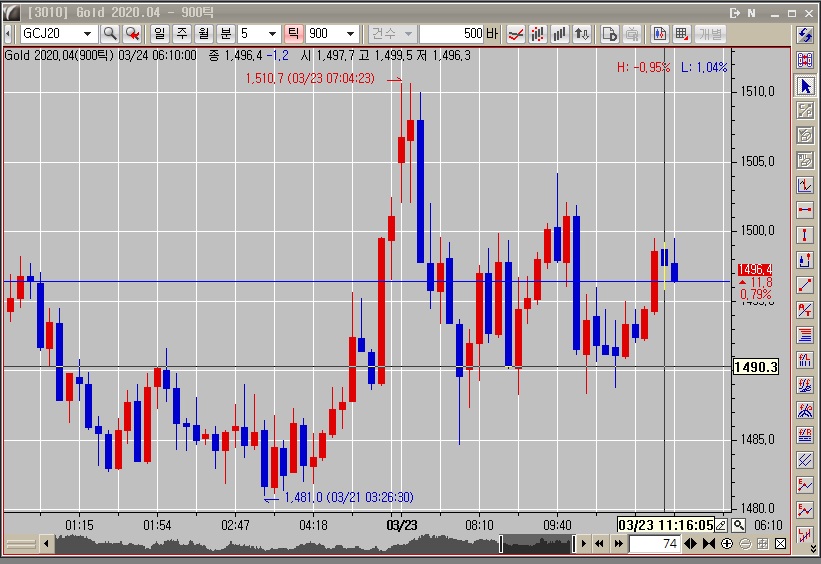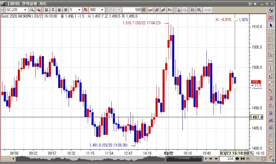 현재봉이 23일 16시 10분(비정상)으로 나옵니다.