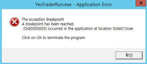 (0x8000003) occurred in the application at location 0x6e012cee.