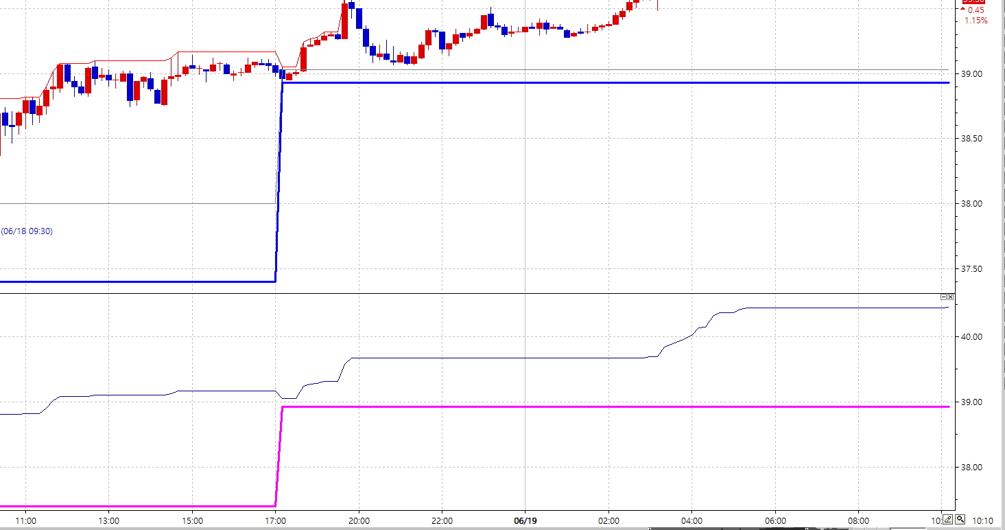 1. "가격지표 -> 시고저라인"을 차트에 적용하면 첨부파일1과 같이 날짜가 변경되지 않았음에도 저가의 위치가 변경됩니다. dayhigh 함수의 판단이 되는 시간은 몇시부터 몇시인가요?