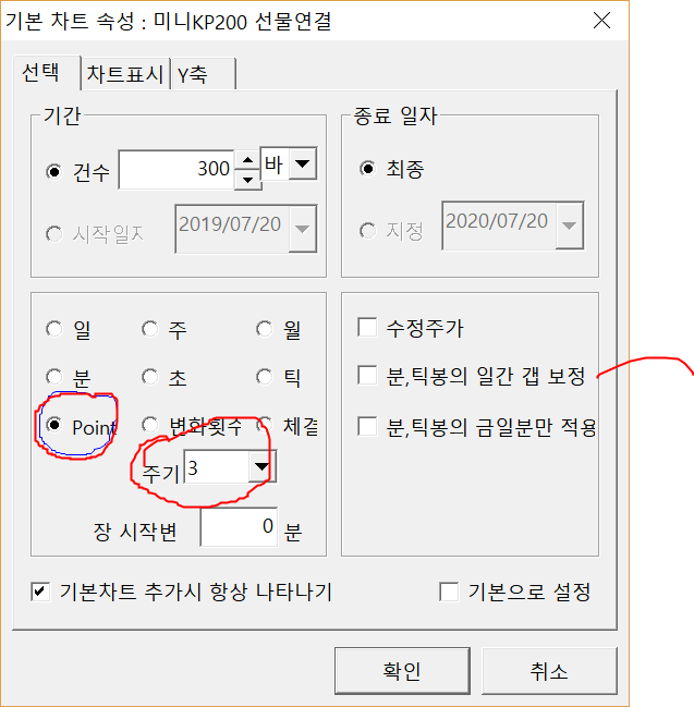> 첨부된 그림에서 데이터 선택할때 point로 3주기로 선택하면 데이터가 어떻게 생성된다는 의미인지를 알려주시면 감사하겠습니다. 그림에서 빨간 선으로 표시하였습니다.