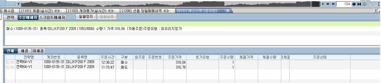 예스글로벌로만 자동매매시에는 정상입니다만, 스팟에서 매매를 하려면 첨부 화면처럼 주문은 들어가는 것 같은데요, 체결이 되지 않고 있습니다.