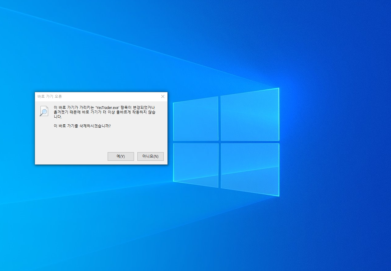 예스트레이더 실행아이콘에서 마우스우클릭 > 속성을 클릭하신 후 '바로가기'탭에서 '대상'의 해당경로에 YesTrader.exe 가 있어야 합니다.