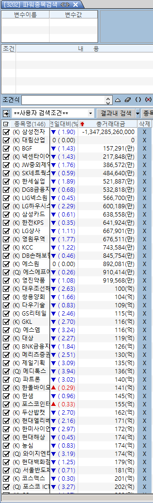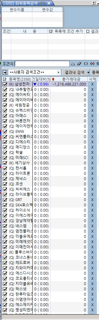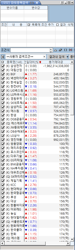파워종목검색창을 기준으로 종목들을 불러오면 희한하게
