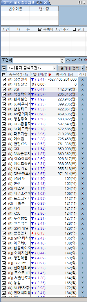 > 제목 : 장마감후 특정종목들 거래대금이-로 나옵니다