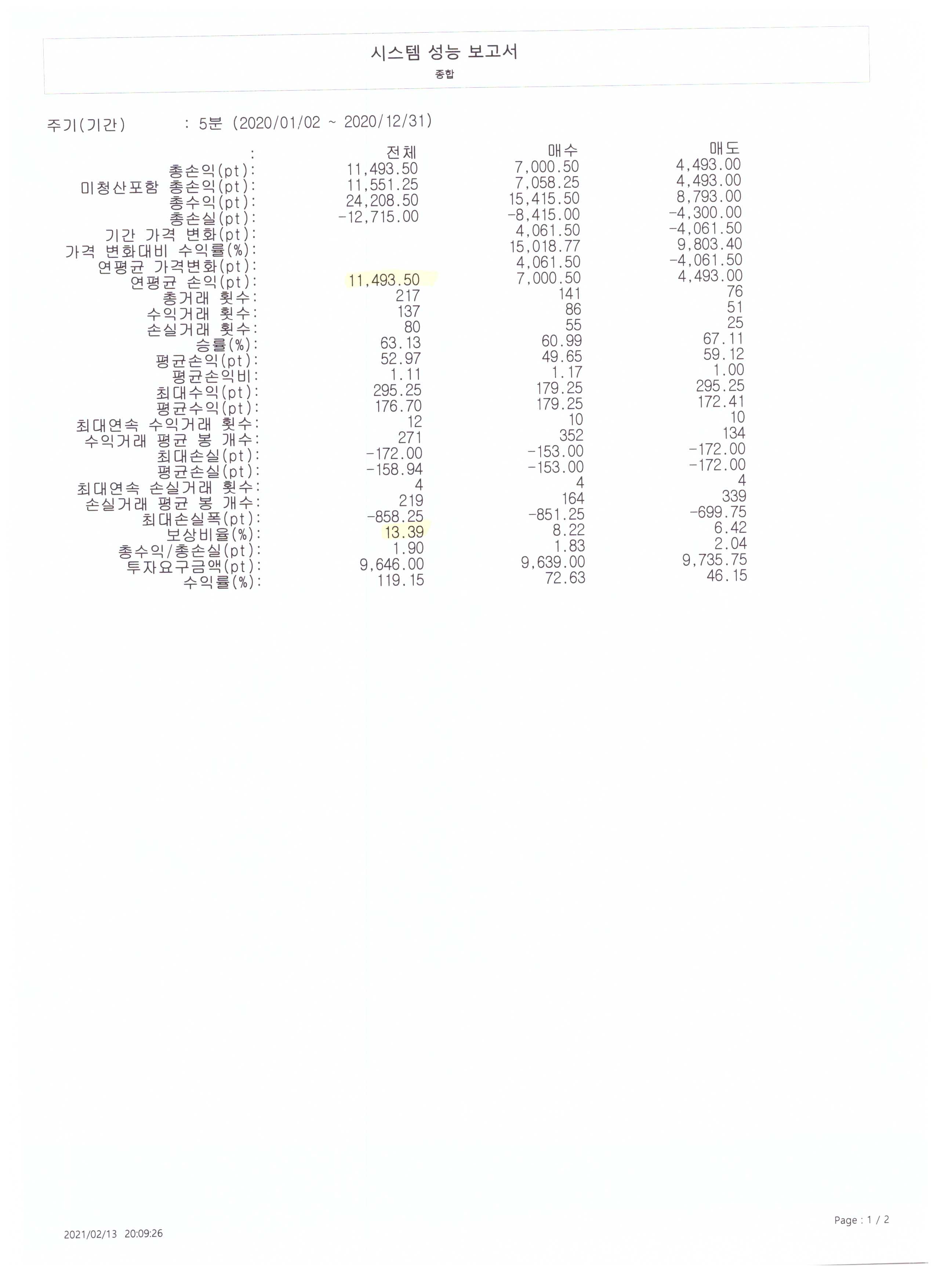 => 올려주신 내용을 보고 성능보고서 인쇄해 보았는데, 1장으로 출력되어서