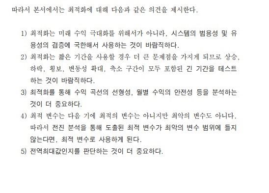 해당 변수값 전후의 값은 수익차이가 많다면 해당값은 국소최대값입니다.