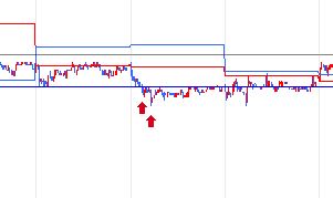 차트에 적용하실 때 화살표는 제공되지 않고, 원이나 십자 등으로 표기가 가능합니다.