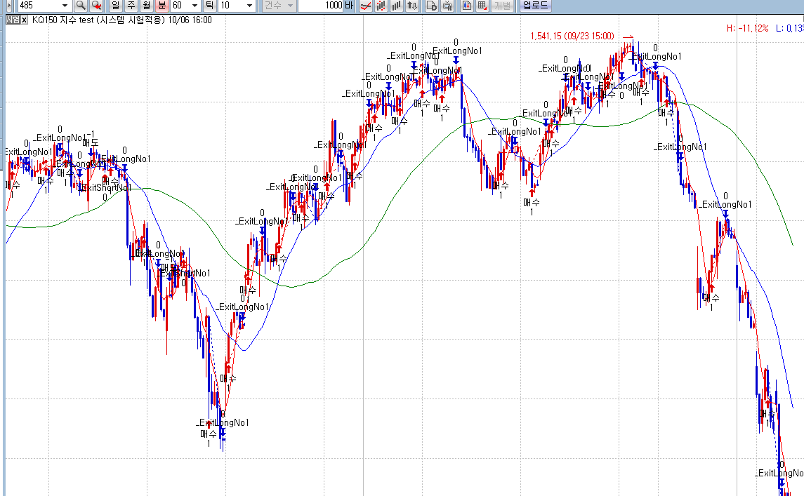 전략 차트에는 매수 매도 신호가 표기가 되고있습니다만