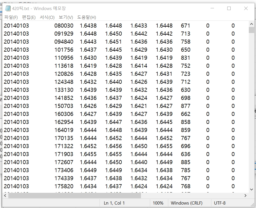 두번째 첨부 이미지는 아스키 불러오기를 하려는 메모장에 저장된 원본 데이타입니다.