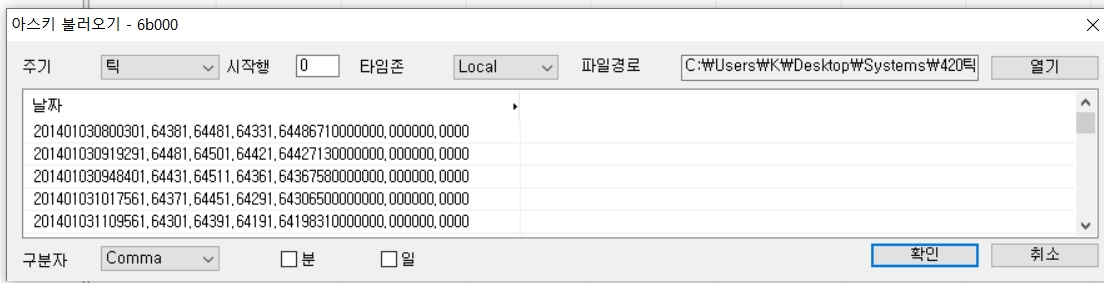 > 제목 : Data Manager에서 아스키 불러오기