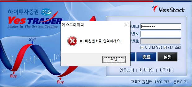 해당 창은 비밀번호 입력을 하지 않은 상태에서 '접속'버튼을 클릭했을 때 발생됩니다.