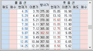 옵션시세표는 '[3401]종합시세표' 를 제공하고 있습니다.