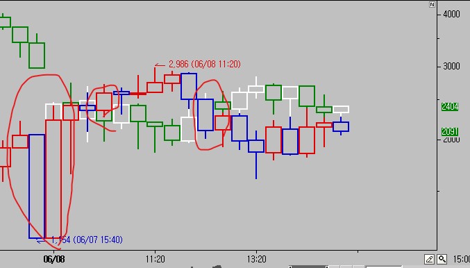 저는 국내 선물 매매시 총매수건수 차트와 총매도 건수 차트를