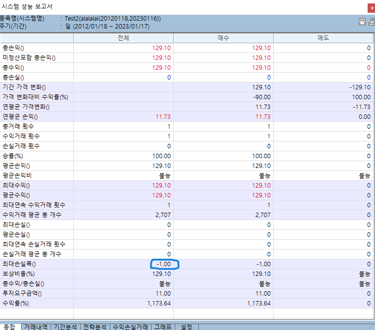 아래와 같이 변경하셔셔 사용하시면 최대손실폭 확인이 가능합니다.