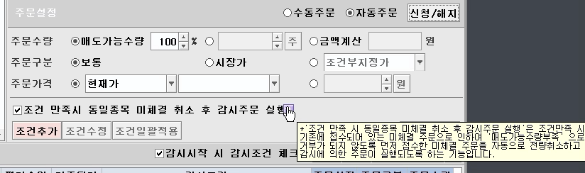 > 사진은 키움 HTS 스탑로스 기능을 캡쳐한건데요