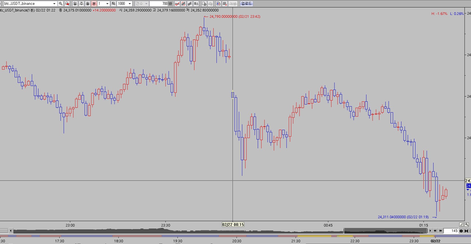 올려주신 내용 확인해 보았는데 말씀하신 시간대의 약 25분 정도 바이낸스거래소의 API 접속이 끊어져서 발생된 현상입니다. 예스트레이더 코인에서는 각 거래소의 API 데이터를 이용해서 시세를 제공해 드리고 있는데, 어제밤 바이낸스 거래소의 API접속이 일정시간 동안 끊겼습니다. 저희가 백업을 위해 여러 개의 세션으로 접속을 하는데, 바이낸스 거래소만 그 시간대에 연결된 세션이 모두 끊겨서 시세를 받지 못한 것으로 확인되었습니다. 이런 경우는 발생되는 원인은 2가지 정도로 추정해 볼 수 있는데, 바이낸스 거래소가 API 점검 등의 이유로 일시적으로 접속을 끊는 경우가 있을 수 있고, 바이낸스 거래소의 API 연결 네트웍의 장애가 발생되어 끊기는 경우도 생길 수 있습니다. 접속이 끊어졌던 시간 상으로 볼 때 전자의 경우인 것으로 추정됩니다.