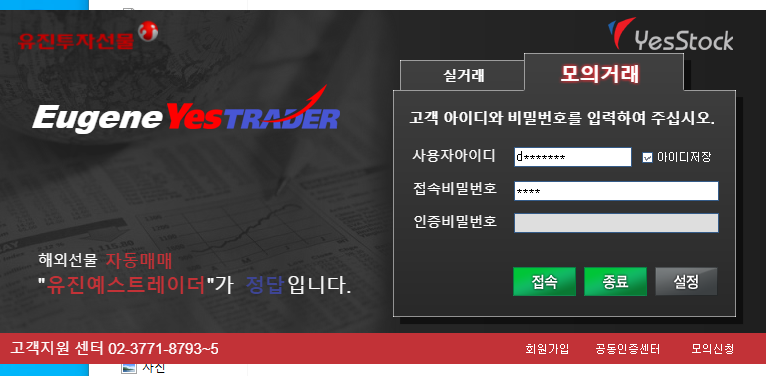 계좌비밀번호를 접속비밀번호에 입력하신게 아닌가 생각됩니다.