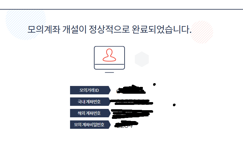 모의거래 비밀 번호 4자리를 받아 입력하면...