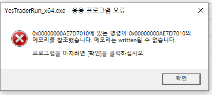 문제 해결을 위해서 64비트 예스트레이더를 설치해서 사용하시기를 권해 드립니다.