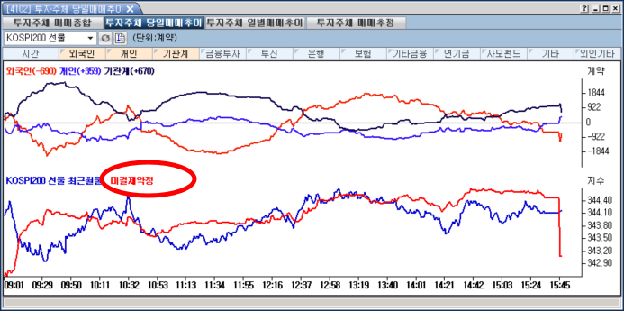 안녕하세요... 4102화면에서 외국인, 개인, 기관의 선물계약은 그래프와 지금 몇계약을 사고 팔고 있는지 숫자로 보여 주고 있어요.. 그런데 밑에 있는 선물최근월물과 미결제약정은 그래프만 나오고 숫자는 표기되지 않아 선물지수와 미결제약정을 알려면 또 다른 화면을 봐야해요. 특히 미결제약정은 파생상품 거래자들이 많이 참조하는 지표로 숫자가 안보여서 불편합니다. 선물계약수처럼 괄호 안에 숫자를 표시해 줄 것을 부탁드립니다.