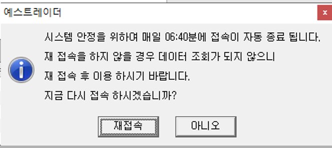 > 제목 : Re : 예스트레이더 자동 접속 해제 시점 문의