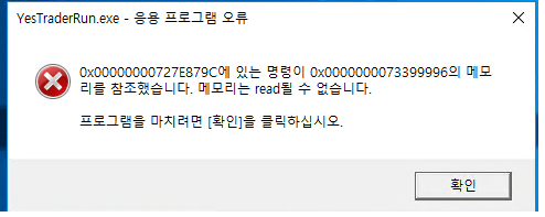 오늘만 아래와 같은 에러가 발생하여 두번이나 프로그램이 강제종료 되었습니다.